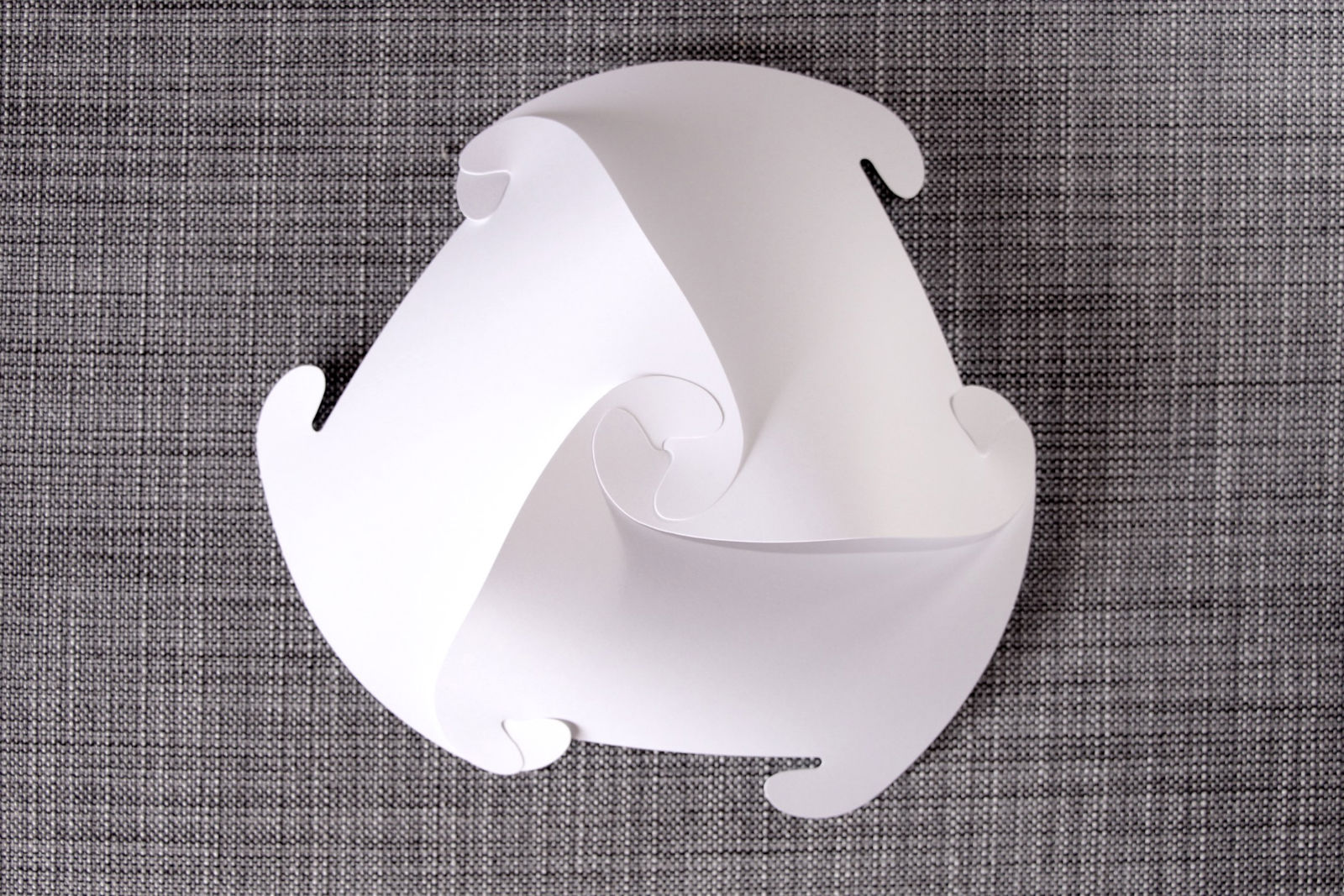 Die geheimnisvolle Form der Papierlampe regt immer wieder zum Rätseln an. Denn Pappla besteht aus einzelnen Segmenten, die ohne Klebstoff, ohne Klammern oder sonstige Hilfsmittel miteinander verbunden sind. Aber wie gehören die einzelnen Teile des künstlerischen Gebildes wohl zusammen, welche Geometrie steckt dahinter?