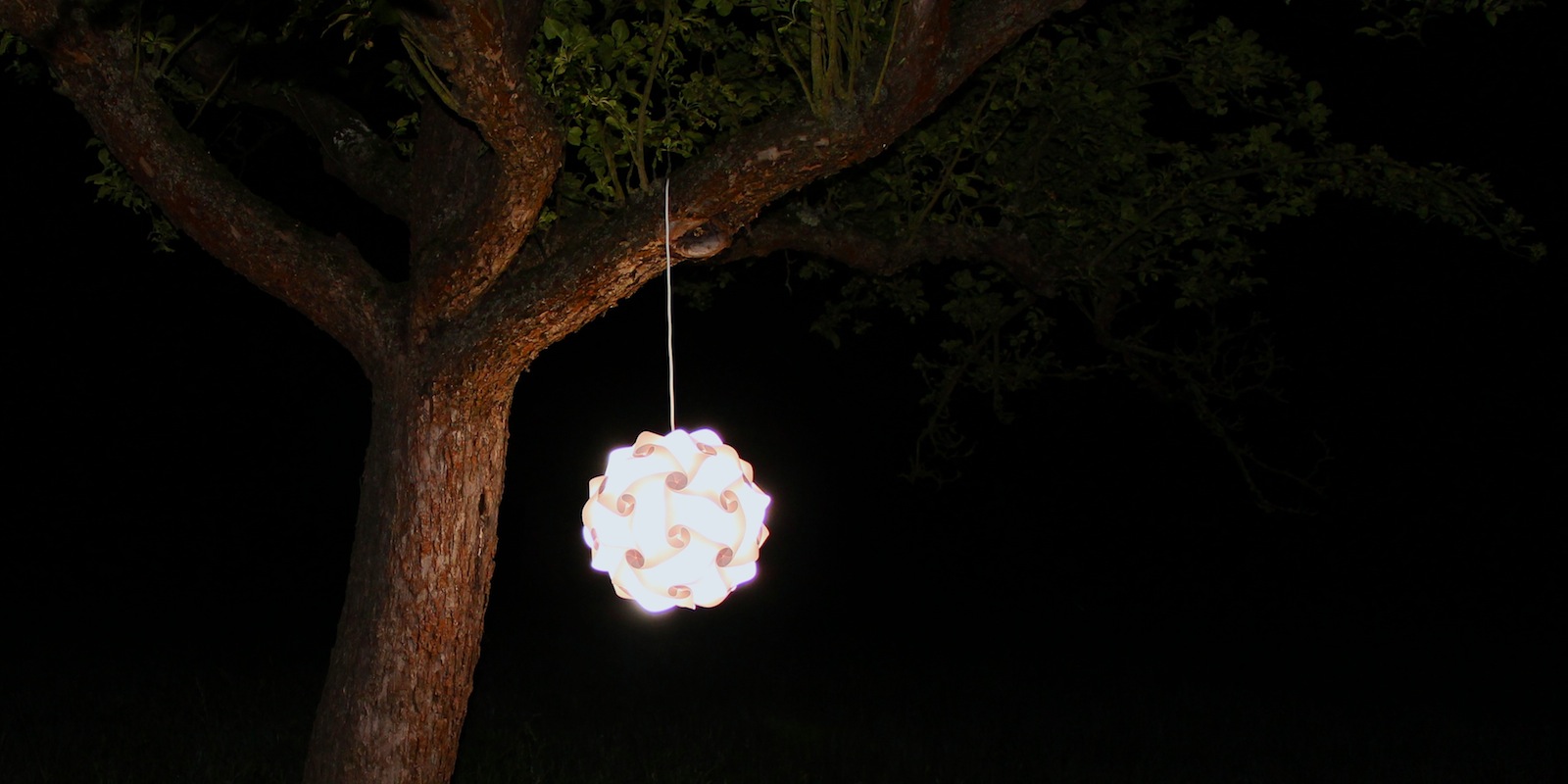 Hochwertiges Kartonpapier hat interessante Eigenschaften für den Lampenbau. So lässt der Werkstoff nur ein Teil des Lichtes hindurch, so dass eine stimmungsvolle Beleuchtung möglich wird. Zusätzlich besitzt die Papierlampe viele Spalten, aus denen Licht auf die gewölbten Flächen der Lampe reflektiert wird, was zu einem wunderschönen Lichteffekt führt.